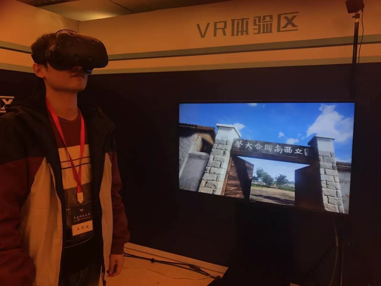 西南联大校园在科技手段帮助下得以复原,图为工作人员戴上vr眼镜体验复原后校园