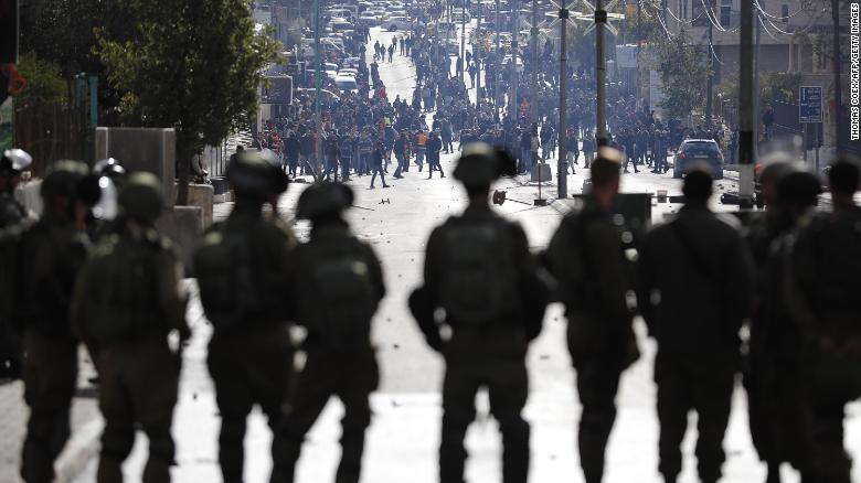 据《华盛顿邮报》消息,在拉姆安拉的一个检查站附近,数百名巴勒斯坦抗议者焚烧轮胎,并且向以色列士兵投掷石块,而以色列士兵则向巴勒斯坦抗议人群发射了数十发催泪瓦斯以及“震撼弹”(可制造强烈闪光和巨大噪音)。以色列军队代表确认了这一消息,称双方“正在交火,我们正在了解细节”。