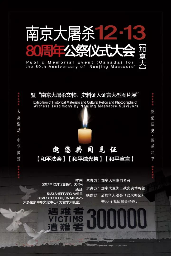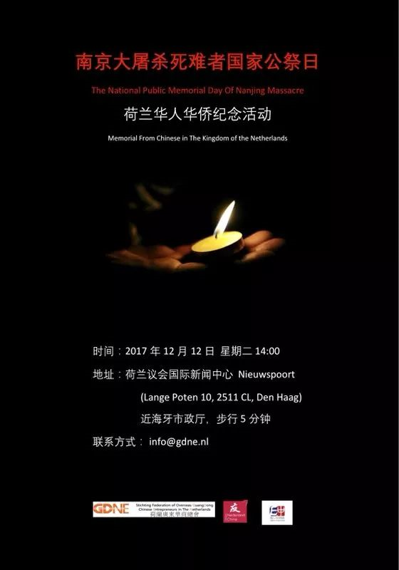 12月13日当天,美国、加拿大、德国、澳大利亚、荷兰、塔吉克斯坦、阿根廷、博茨瓦纳、东帝汶等国家和地区的400多个华人华侨社团将同步公祭,悼念南京大屠杀死难者。预计海外直接参与公祭活动的人数超过万人。