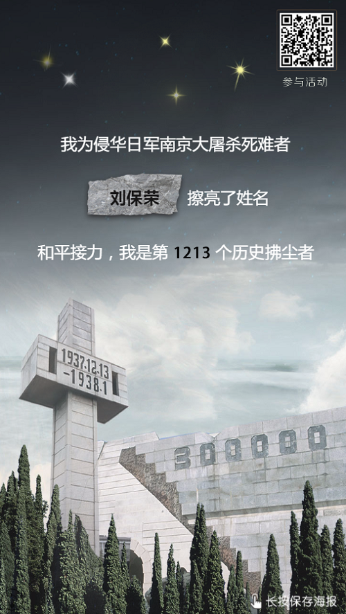 页面上同时会生成独属于你的那张海报。长按即可保存海报,永久纪念这份刻骨铭心的历史,永久记录这份守护真相的行动。