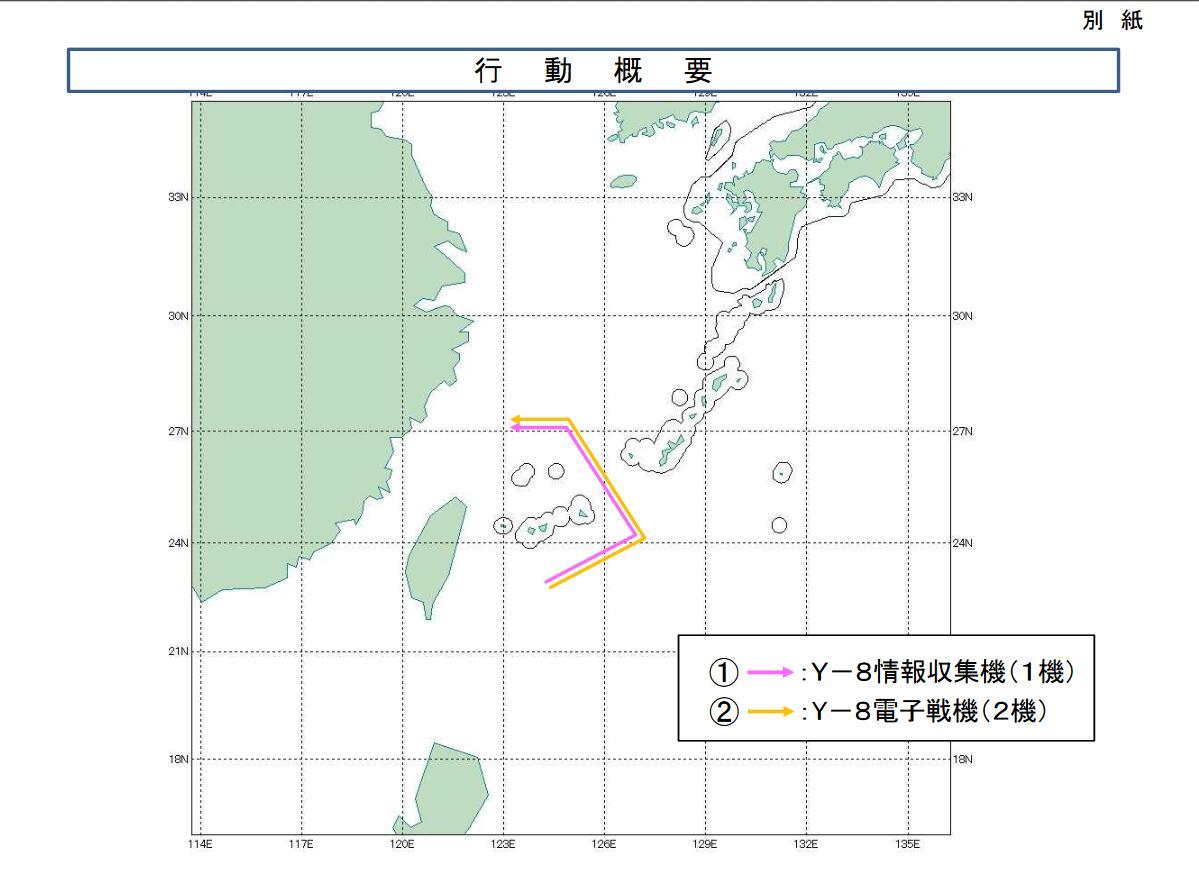 日本防卫省统合幕僚监部发布的解放军战机飞行路线