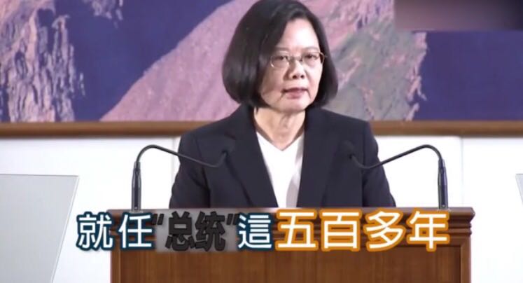 蔡英文发现自己口误,面露笑容改口称“对不起,是500多天以来”,随后不好意思地说“500多年好像蛮长的”。