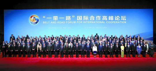5月14日,中国国家主席习近平在北京同出席“一带一路”国际合作高峰论坛的代表们合影。