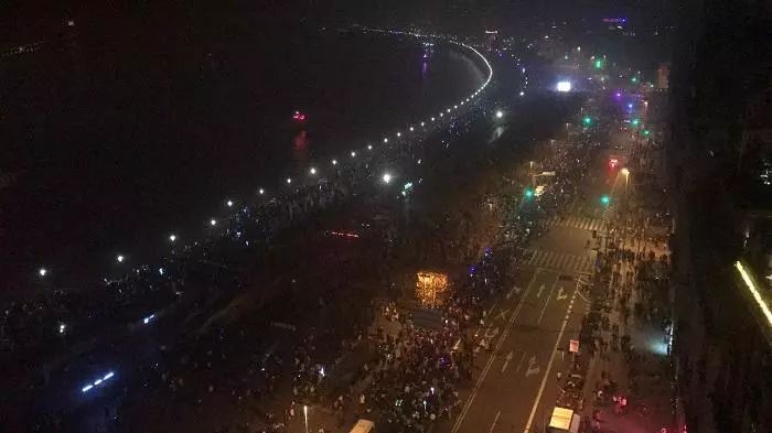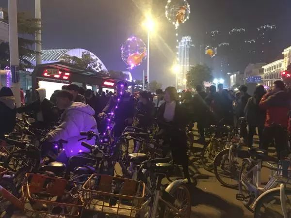 跨年夜在沿江大道骑车的学生们。来源:澎湃新闻