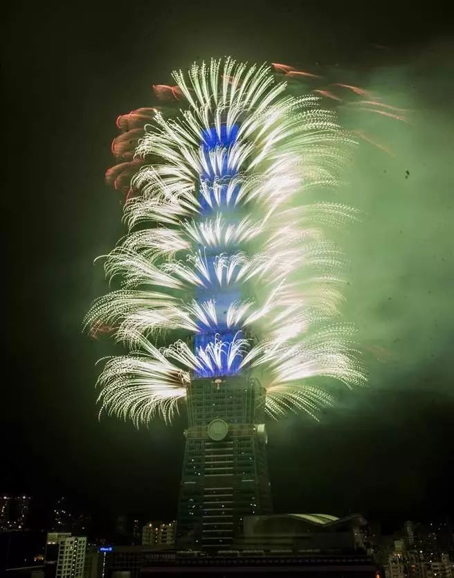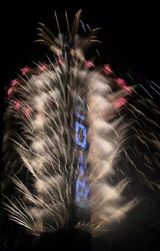 中新社记者李志华摄 台湾 2018年1月1日,台北101跨年灯光烟火秀在倒数声中登场,与民众一起迎接崭新的2018年。