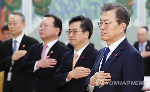 文在寅于今年首次国务会议上向国旗行礼(图片来源:韩联社) 【环球网报道记者丁洁芸】“金正恩委员长在新年贺词中表达了派团参加平昌冬奥和进行会谈的意愿,这是朝鲜对韩方‘让平昌冬奥成为改善韩朝关系的转机’提议的响应,表示欢迎”。据韩联社报道,2日上午,韩国总统文在寅在青瓦台主持召开今年首次国务会议时,首次对朝鲜劳动党委员长金正恩新年贺词作出回应。 文在寅指示统一部和文化体育观光部尽快准备后续方案,以尽早恢复南北对话,实现朝鲜代表团参加平昌冬奥会。 文在寅还表示,改善韩朝关系不能与解决朝核问题脱钩,并指示外交部与友邦和国际社会紧密合作与沟通,同步推动上述两大问题取得进展。 值得一提的是,文在寅在表达欢迎的同时,指示相关部门尽快出台后续措施。韩联社称,这是韩国政府正式以朝鲜参加平昌冬奥为契机改善南北关系,以及为进一步解决朝鲜核问题准备突破口。 除了文在寅,青瓦台和国际奥委会(IOC)发言人也对金正恩给出的“惊喜”表示欢迎。 金正恩:有意派团参加平昌冬奥