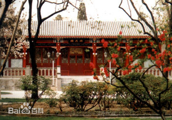 主馆前的广场上,半圆形的草坪上有一圆形水泥平面,广场如半月,圆形的水泥平面似一轮红日,寓意周恩来光辉业绩与日月同辉。与纪念馆正面隔湖相望的是瞻台,其和主馆、附馆在一条中轴线上,它由廊亭和高达16米的剑碑组成。剑碑各由四根柱子组成棱形剑头,看似无形胜有形,寓意周恩来的精神、品德、业绩如丰碑永远地矗立在亿万人民心中。纪念馆两侧通过两座桥与入馆道路相连,东侧连接清扬公路周恩来铜像 ,西侧直通城区,可以到达周恩来故居。纪念馆主馆为花岗岩贴面。色彩简洁明快,外观庄重肃穆,与四周的清波绿水交相辉映,象征着周恩来的博大胸怀和平易近人的高尚情操。另外,整个馆区占地五百多亩,其中五分之四是水面。[4] 周恩来铜像 周恩来铜像广场上的周恩来铜像高度为7.8米,其中底座3.6米,像身高4.2米,总高度寓意伟人周恩来走过的78个光辉的人生春秋。基座上“周恩来同志”五个金光闪闪的大字是由江泽民同志于1997年12月31日题写。铜像重量两吨多。其姿势取材于20世纪50年代末,60年代初周恩来与工人、农民亲切交谈时的习惯动作:双手叉腰,面带微笑,显现出周恩来平易近人的风范。 仿西花厅 ![]() 仿西花厅是经中共中央批准,江苏省委省政府向周恩来百年诞辰的献礼工程,它是1997年1月19日奠基开工,1998年3月5日周恩来百年诞辰时建成对外开放的。它和湖对面南边的剑碑、半岛上的周恩来纪念馆、周恩来的铜像邓建在同一条中轴线上,建筑面积有六千多平方米。仿西花厅的上层是仿制北京西花园的第三进园子的全部建筑,也就是一方四合院。处于最前边的主建筑就是西花厅,也就是北京“西花园”的主建筑。它是周恩来当年会见外宾、举行重要国事活动的主要场所。后排由西向东依次是周恩来的活动室、办公室、后厅会客室、邓颖超卧室、邓颖超办公室和周恩来卧室;周恩来办公室门前的一小间是当年总理卫士值班室;两边厢房分别为周恩来身边工作人员、周恩来亲属和烈士子女的用房。 馆区建筑都由花岗岩外贴面,地由青灰水泥方砖铺盖,全部采用青、白两种颜色,象征周恩来一生两袖清风、清清白白。[4] 纪念馆正面隔湖望去,南面是观景台,它由廊厅和两座高达16米的剑碑组成,象征着周恩来的丰功伟绩与日月同辉。从这里乘游艇,可直达周恩来故居。 展览与藏品 《战争年代中的周恩来同志》 在周恩来纪念馆数以千计的馆藏字画中,有一幅中国画《战争年代中的周恩来同志》,这幅画因取材于战争时期的周恩来而弥足珍贵。画的作者是现任江苏美协秘书长、中国美协理事的陈世光。 陈世光擅长画马,他画的马在承继前辈大师成就的基础上,着意于无拘无束的自由奔放的精神气质和着力于中西画法的融合,以书法入画法,以墨色塑体积,充分利用宣纸的渗化性能,着笔时灵动潇洒随意,不刻意求工,不着眼于细节的完整真实,尤重马的神情动势,竭力追求马的灵动、奔放自由之情态,可以称得上是继徐悲鸿之后当代中国画坛又一个画马的大家。 《战争年代中的周恩来同志》的取材于二十世纪三十年代中期美国友人艾德加·斯诺为周恩来摄的一张经典照片。1935年10月,举世闻名的万里长征胜利结束。周恩来随中央红军到达陕北吴起镇,不久,斯诺也踏上了苏区的土地。在这里,他以自己独特的视角为中国革命摄下了一张张珍贵的照片,其中就包括这张“到达陕北后的周恩来”。这张照片是周恩来在长征时期具有代表性的一张,也是不可多得的一张珍贵照片,它真实地反映了戎马生涯中周恩来的威武与精练。陈世光的画将斯诺照片中的周恩来临摹的惟妙惟肖,形神皆备,足见画者的笔力与功底。画中的周恩来头戴八角帽,身着灰色的红军军服,浓眉下闪烁着一双智慧、坚毅的眼睛,双手紧纂着缰绳,坐骑下是一匹膘肥健硕、气宇不凡的灰色骏马。这幅画展示了伟人周恩来作为军事家飒爽英姿与政治家的儒雅俊逸,给观者以穿透时空的丰富遐想和身临其境的美好感受。 周恩来故居 《战争年代中的周恩来同志》是陈世光于1997年隆冬专为迎接周恩来百诞辰倾心所作,作品曾参加了1998年3月江苏省文联举办的“纪念周恩来同志一百诞辰书画作品展”。在这次展览后,参展的近百幅书画作品悉数由江苏省文联无偿捐赠给了淮安周恩来纪念馆收藏。 “气度汪洋”刘海粟 ![]()