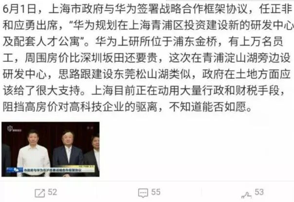 报告中显示,在深圳,从2015年下半年到2016年5月,华为公司缴纳个税的人数持续减少,从去年的7.29万降到了2016年一季度的6.3万人,而到五月份员工则减少到2.05万人。减少人员月均税额4000元,测算减少年度税源9.84亿元。 华为方面也证实,在这期间从深圳迁出了20300人。综合迁入迁出情况,2016年华为累积净迁出深圳11200人。 查了下华为所在的2017年深圳龙岗区一季度经济数据,税收收入同比下降25.8%。去年,华为还在迁徙。 因为在2016年,华为的产值还占深圳龙岗区工业总产值的47%以上! 买不起房子,公司给你建 真的看哭了 一年前,多家上市公司发布卖房公告,因为他们半年利润不及很多城市的学区房。不得不卖房止损。 在深圳证券交易所网站可以看到,某公司拟出售两套在京房产以“补充公司流动资金”的公告。上市公司卖房的故事,其实反映了楼市过热背景下经济形态的扭曲。 拿到融资的你有没有觉得革命成功了,然后搬进房租昂贵的办公司。然而,房产涨价,人力成本也贵了,投资人投给你的钱,有多少交给了各级房东?来自三四线及以下城市的你,在城市打拼多年,能否买得起房,有没有背着房贷,一还就是20年。 “买房,对我来说,一样是一种遥不成及的胡想。”一位在深圳腾讯总部工作的85后阿文告诉记者。他在腾讯已工作4年,级别为T2级工程师,薪水接近3万,在腾讯普通员工薪酬中属于中等偏上,买房一事仍然无穷期弃捐。 高房价连腾讯员工都难以招架,仗义的华为啥都不说,自己建房低价卖给员工。 对于好员工,华为从来不吝啬。今年的年终奖,根据华为新的规定,只要做出突出贡献,在新方案里,小员工也可以拿到23级员工的奖金。粗略估算下,华为23级员工的季度奖金也近百万元。华为只看贡献,上不封顶,还不拖欠! 华为一直都没有上市,而是把98.6%的股权开放给员工,创办人任正非只拥有公司1.4%的股权。 其实,局气的老板不止华为。 董明珠在2017年末已经承诺:格力将给8万员工每人一套两房一厅的房子,只要你做到退休(这套房子)我就给你,产权百分百归个人,房价再高跟你没关系。 之前有消息说马云在杭州建了380套福利房,凡是符合在阿里工作满三年且实际工作地点在杭州,且在杭州没有住房的P8/M3及以上层级员工。 东莞,洗白白 东莞早已经不是当年,臭名远扬的“性都”了。 东莞不止对华为好,他们给其他优质企业相似的福利政策,吸引优质企业进驻,打造高新产业园区。大企业来了,税收来了,这比靠房价提升GDP的套路健康多了。 房价给年轻人的压力逐年增大,南京、武汉、成都、郑州等城市为了吸引、留住人才都采取了限购、落户等政策。例如,武汉承诺让大学生低于市场价20%买房。 华为在上海的员工超过1万。去年6月1日,任正非和上海市签署战略协议,其中一个重要事项是解决华为员工上海住房问题。