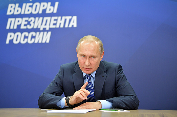 当地时间2018年1月10日,俄罗斯莫斯科,俄罗斯总统普京造访他的竞选办公室。