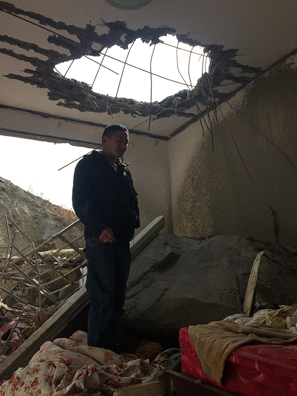 靠近垮塌地带的西屋,已被滚落的土石夷为平地。