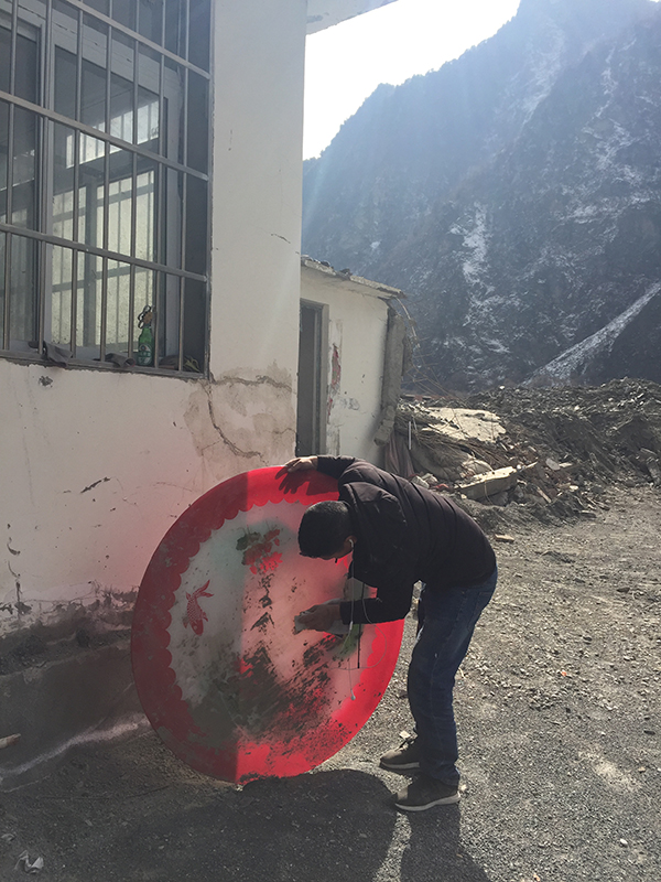 乔大帅的房子在五楼,93平米的毛坯房,开发商在客厅刷了下石灰,还未装修,也没钱添置任何新家具,俨然一个空空的水泥盒子。 澎湃新闻(www.thepaper.cn)到访当日,乔大帅才花了400元钱,买了一个小沙发,“过年了来个人,大家坐起来才像个样。” 这天,他又专门回到“乔家大院”(乔大帅遭灾前在新磨村老家开办的农家乐),找些可用的家当。 他在从沾满泥石的杂物中翻腾半天,找到一张桌子,桌腿已经坏掉了,他取下桌板,捡了些废纸擦掉上面厚厚的泥土。考虑到新居以后还要装修,他又去卸下了一个洗浴脸盆,小心翼翼的搬上车。 ![]()