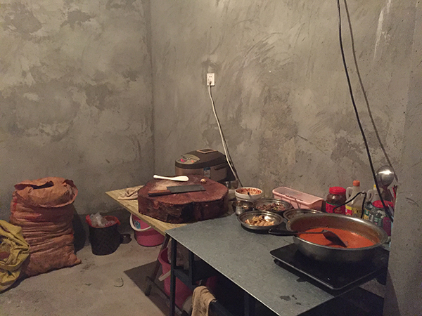 乔大帅的新居没有任何装修,厨房的用具是一些企业捐助的。