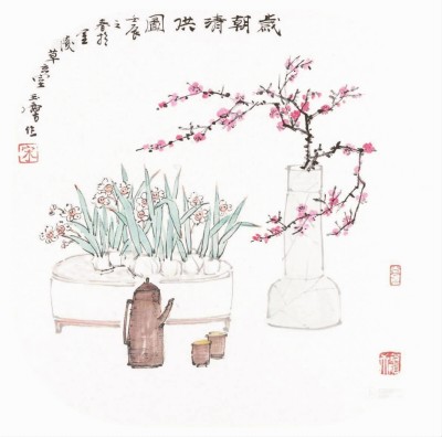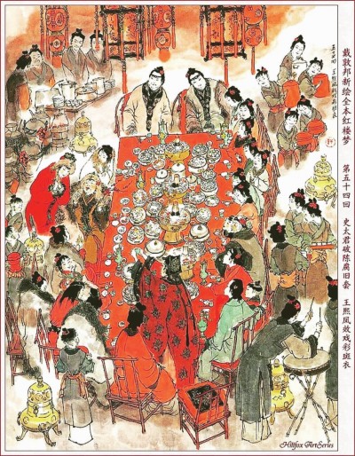 ![]() 题图为宋玉麐《岁朝清供图》 ![]() 图为吴昌硕《岁朝清供图》 ![]() 图为戴敦邦绘《红楼梦》插图 《尔雅·释天》 中说:“年者,禾熟之名,每岁一熟,故以岁为名。”所以,“年”是收获的象征,为了庆祝收成,“吃”成为年节里的重要主题,和“吃”有关的记忆渗透在文学的脉络中。从古至今,作家对“年味”的描绘中,食物是不缺席的。春盘、春饼、饺子、年糕,这些都是很家常的平民食物,但是它们在春节的餐桌上是如此的重要,因为它们被寄托了很多美好的意愿。 舌尖上的春节,荡漾的是心愿和心意的滋味。 一一一编者 春草年年绿,新春的绿色饮食 特别会吃、也特别会写吃的梁实秋,唯独谈过年的饮食意兴阑珊:“年菜即是大锅菜,大锅的炖肉,加上粉丝是一味,加上蘑菇又是一味;大锅的炖鸡,加上冬笋是一味,加上番薯又是一味……历十余日不得罄。”肉天肉地,吃了小半个月,宁可吃芥末堆儿和素面筋。 物质丰富以后,春节的“轻食”成了时尚。其实时尚是历史的轮回,古早的春节食俗还真是讲究吃素的。大概是因为立春和春节挨得很近,翻看古人的记录,立春日和大年初一都有“食春盘”的习惯。 东汉的 《四民月令》 里记载:“立春日,食生菜,取迎新之意”。到了晋代,出现了“五辛盘”,新年第一天要吃由五种带气味的蔬菜做的拼盘。《荆楚岁时记》 有“元日,进屠苏酒,下五辛盘”的记载。周处的 《风土记》里说,“元日造五辛盘。”他详细地解释“五辛发五藏之气,即大蒜、小蒜、韭菜、芸苔、胡荽是也。”古人认为春天气温回升,万物复苏,人的气息也该向外发散,所以要吃蒜、韭菜、香菜这类“辛味”食物,散去体内郁气。唐人 《四时宝镜》 里出现了“春盘”的提法:“立春日,食芦、春饼、生菜,号春盘。”有一首民俗诗与之呼应,曰:“立春咸作春盘尝,芦菔芹芽伴韭黄。”这时,春盘已经发展成一种讲究的迎春食俗,烫白面春饼,里面裹着的芦菔、芹芽、韭黄等菜丝,都是多汁甜美的———从五辛盘到春盘,祈祷身体康健的药膳变成了追求口感的美食。杜甫的咏春诗里写:“春日春盘细生菜,忽忆两京梅发时。盘出高门行白玉,菜傅纤手送春丝。”远在巴蜀之地的诗人,在冬日寒江的萧瑟风景中,思念长安洛阳城里热闹的节日、食物和人,是很惆怅的。清代 《帝京岁时纪胜》 里的描写:“新春日 献辛盘。虽士庶之家,亦必割鸡豚,炊面饼,而杂以生菜、青韭芽、羊角葱,冲和合菜皮,兼生食水红萝 卜,名曰咬春。”这就很接近现代人所熟知的“春饼”了。 吃春饼的习惯传了下来,只是如今我们不拘于在“立春”或“元日”这两个特定的日子吃,它们成了家常的食物,不再被赋予强烈的仪式感。然而看起来同样很家常的“七菜粥”则失传了。按照女娲创世的神话,前六天她造了各种动物,到第七天,她造出人。自汉朝开始,正月初七被称为“人日”,是新年期间很重要的日子,这一天要吃七种早春蔬菜做的粥羹。如 《荆楚岁时记》 里记:“正月七日为人日。以七种菜为羹。”具体是哪七种菜,典籍中 已不可察。这个风俗传到日本,保留至今,现代日本人仍把一月七日定为“人日”,这天要吃“七草粥”。“春之七草”分别是水芹、荠菜、鼠曲草、繁缕、宝盖草、芜菁和萝 卜,除了芜菁和萝 卜,前五种都是种水稻的农业地区湿地里常见的野菜。这七样菜的共同点是发芽于深秋,越冬生长,有顽强的生命力,被认为是坚韧品格的象征。想来在中国古代,先民们也是利用野地里看似不稀罕的“杂菜”,在朴素的食物里寄托着顽强的生命欲望。 “春盘”和“七菜粥”最初都有药膳的意味,那么屠苏酒就明确是种药酒。“爆竹声中一岁除,春风送暖入屠苏。”王安石的这句诗,可能是所有关于春节的诗歌中最喜闻乐见的一句。诗中的“屠苏酒”起源于晋代,屠是“割”的意思,苏是指腐草,割腐草入药,做成酒,古人认为,全家老少在新春时饮下这种药酒,能“不病瘟疫”。唐人 《四时纂要》 里记有屠苏酒的方子,用到大黄、蜀椒、桔梗、桂心、防风、白术、虎杖和乌头,恰如名医孙思邈在 《屠苏饮论》 说:“屠者言其屠绝鬼炁,苏者言其苏醒人魂”,屠苏酒主要是预防春瘟的。 《酒律》说,新春饮酒须从少到老轮流,最年长的最后连饮三杯。药酒未见得有多好喝,但是诗人们因为饮屠苏留下了诸多名篇。白居易和刘禹锡等好友的元日唱和诗中,出现“与君同甲子,岁酒合谁先”“与君同甲子,寿酒让先杯”这样的句子。范成大写过“尊前现在休嫌老,最后屠苏把一斛。”“早生华发”的苏轼最为放达,写下“但把穷愁博长健,不辞最后饮屠苏”,用笑傲岁月的豪情面对迢迢的时光。 舌尖上的春节,荡漾着心愿的滋味 《尔雅·释天》 中说:“年者,禾熟之名,每岁一熟,故以岁为名。”所以,“年”是收获的象征,为了庆祝收成,“吃”成为年节里的重要主题,和“吃”有关的记忆渗透在文学的脉络中。 《诗经·小雅·楚茨》 有“尔肴既将,莫怨具庆,既醉既饱,小大稽首”的欢庆画面。白居易在“晰晰燎火光,氲氲腊酒香”的氛围里,看着儿孙已成行,心事无限。陆游在“守岁全家夜不眠,杯盘狼藉向灯前”的夜晚,感叹光阴飞逝。老舍在 《北京的春节》里写道:除夕真热闹,家家赶做年菜,到处是酒肉的香味。冰心写小时候看母亲“挽上袖子,往大坛子里装上大块大块的喷香裹满红糟的糟