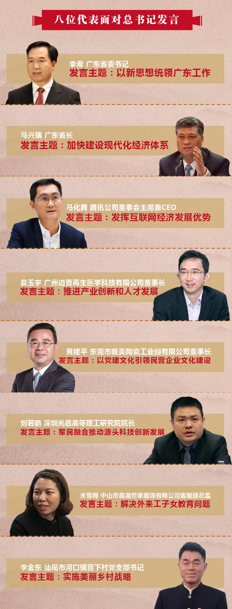 向总书记报告:梦想在改革和奋斗中实现 1986年,一位15岁的初三学生随父母从海南搬家到深圳刚刚两年。他的梦想是有一台8毫米口径的专业望远镜,能亲眼观测时隔76年再次光临地球的哈雷彗星。 1996年,一位33岁的东莞创业者刚刚接手一家濒临破产的企业。他的梦想是自己的产品能像它们取名的那位旅行家一样走遍全世界。 2008年,一位28岁的留美生物医学博士回到广州,当时国内的高端植入医疗器械领域几乎全被进口产业垄断,他的梦想是学成报国,打破这一垄断。 改革开放的伟大时代,给了他们实现梦想的舞台。 若干年后,这三个梦想家,已经可以清晰触摸到自己的梦想。 一个做出了亚洲最大、世界领先的社交平台,他叫马化腾。 一个做成了行业排名第一、远销欧美的马可波罗磁砖,他叫黄建平。 一个实现了生物3D打印技术在全球软组织修复领域的首次产业化,他叫袁玉宇。 3月7日上午,作为全国人大代表的他们坐在了同一个会场,在发言时不约而同地回忆起前些年与习近平的见面。在他们实现梦想的路上,有着总书记的殷殷关切。 习近平五年前到腾讯公司时,大厅屏幕上显示,QQ同时在线人数超过1.47亿,是全球唯一同时在线用户过亿的互联网产品。 马化腾代表告诉总书记,今年春节期间,微信月活跃用户数量首次突破10亿。目前全球市值排名前十的互联网与科技企业中,中国占据四席。互联网与新兴产业的迅猛发展,展现着新时代的“深圳速度”。