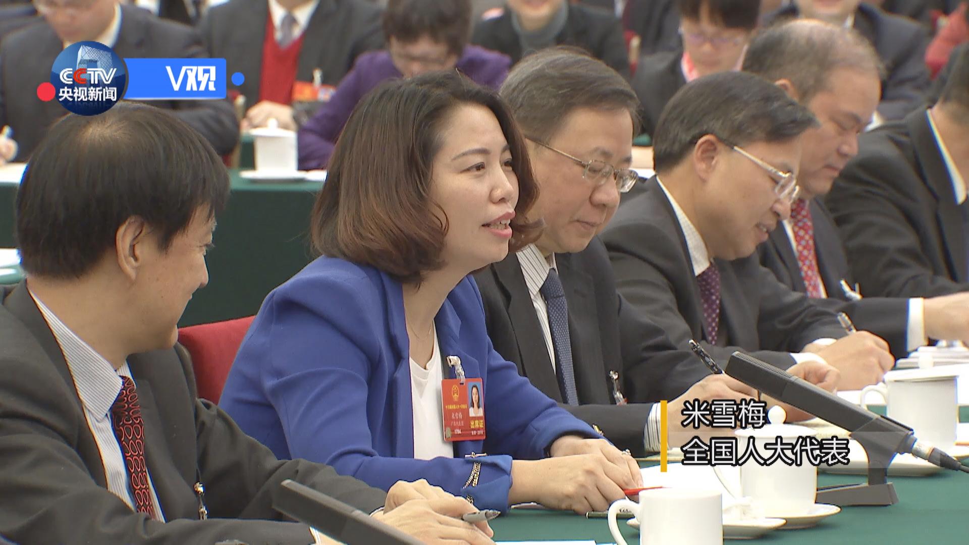 △米雪梅代表在发言 米雪梅代表在发言时分享了她的故事。1997年,她从甘肃老家来到中山一家制衣厂打工。21年里,她先后做过女保安、工艺技术师、跟单员,现在是一家服饰公司的客服总监,从“打工妹”成为了“新广东人”。 她在发言中希望政府不断加大教育投入,满足日益增长的外来工子女的入学需求。 习近平在认真倾听她的发言后,有感而发,作了讲话。 习近平:“梅花香自苦寒来” “共产党就是为人民谋幸福的,人民群众什么方面感觉不幸福、不快乐、不满意,我们就在哪方面下功夫”。 习近平的这一番话,掷地有声。