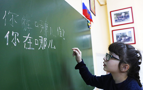 当地时间2017年12月14日,俄罗斯莫斯科,当地一所中学,学生们在课堂学习中文。视觉中国资料图 据俄罗斯卫星网报道,俄教科部副部长、俄教科监督局局长克拉夫佐夫3月14日在俄教科部扩大会议上表示,俄教科监督局已完成举行汉语全国统一考试的技术开发工作,准备把汉语纳入俄全国统一考试。 他表示,“为期3年准备进行汉语高考的辛勤工作已在2017年完成,汉语考试的技术已开发完毕,包括笔试和口试。所有必需的参考材料已经就绪,人才储备也已经完成。我们已经准备把汉语作为第5门可选择的外语纳入最终考核体系。” 此前有消息称,俄教科监督局将在2020年前完成汉语高考相关检测材料的研制。
