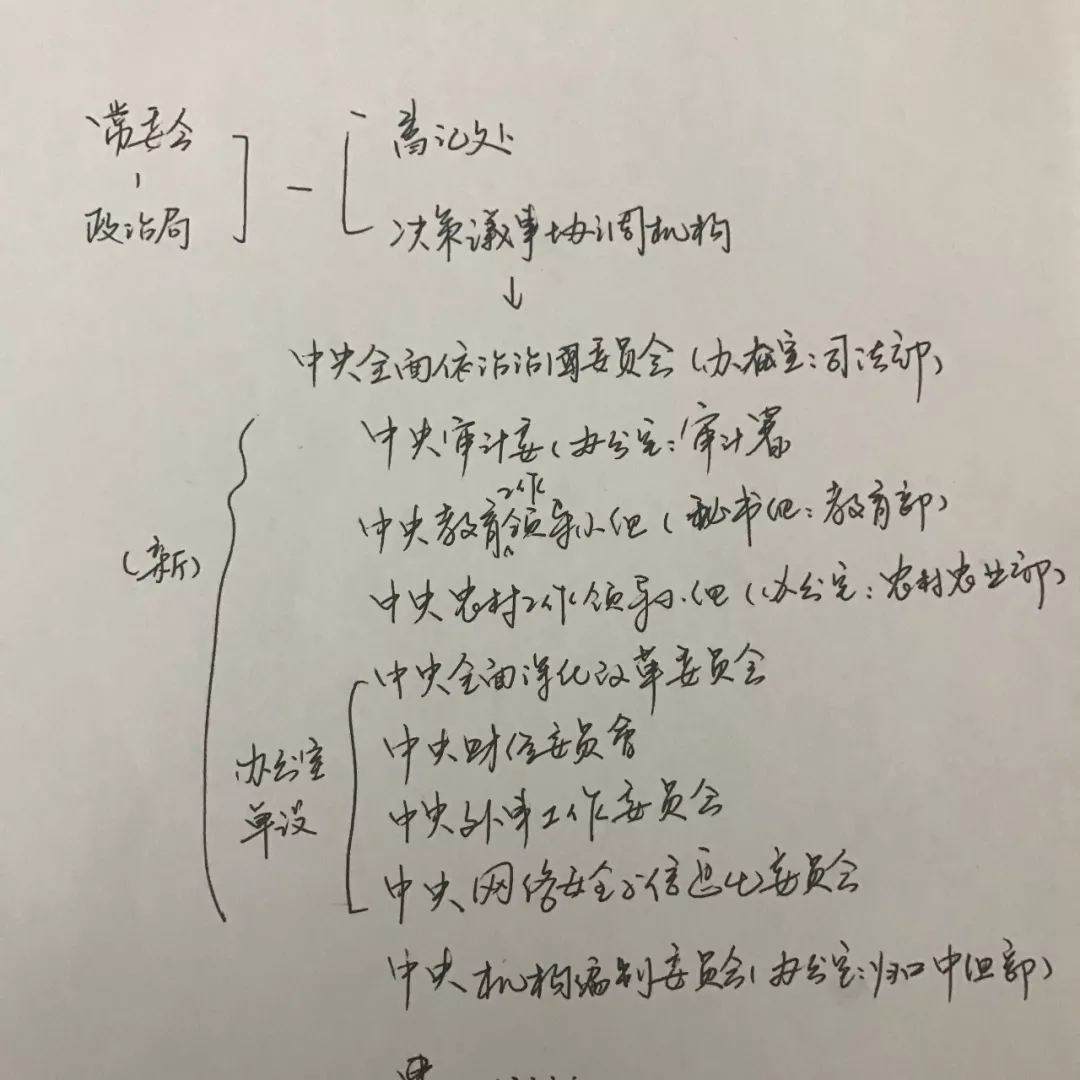 ![]() ![]() 机关 之后我们要普及几个概念:党中央职能部门、党中央办事机构、党中央派出机构、党中央直属事业单位。 根据2017年4月发布的《中国共产党工作机关条例(试行)》,党的工作机构可以分为几类:党委办公厅(室)(综合部门)、党委职能部门(负责党委某一方面工作的主管部门)、党委办事机构(为加强跨领域、跨部门重要工作的领导和组织协调而设立的议事协调机构的常设办事机构)、党委派出机关(为加强对特定领域、行业、系统领导而派出的工作机关)。 在党中央层级,党委办公厅不用说,就是中办;职能部门,包括中组部、中宣部、统战部、政法委等;办事机构,包括政研室、中央台办、中财办、中央外事办、中央网信办等;派出机构,则有中央机关工委等。 按照这个分类,我们来看改革方式: 1、党中央职能部门 中组部,统管中编办、公务员工作,将国家公务员局并入中央组织部(对外保留牌子); 中宣部,统管新闻出版、电影工作,合并了此前广电总局的部分职能,对外加挂国家电影局牌子; 统战部,统管宗教、侨务工作,归口领导国家民委(国家民委仍作为国务院组成部门),将宗教、侨务、民族事务统一归口统战部,合并了国务院侨办,对外保留国家宗教事务局牌子。 政法委,并入了中央社会治安综治委、综治办的职责,且并入了中央维稳办、610反邪教办公室的部分职责。综治委(办)、维稳办、反邪教委(办)不再单设。 此处可以看出,如三中全会《决定》所言,加强了"归口协调职能",一个部门统筹本系统本领域工作。 2、党中央办事机构:优化了中央网信办,并入了部分工信部的职责。 3、党中央派出机构:组建中央和国家机关工作委员会,不再保留中直工委、国家工委。 4、党中央直属事业单位:中央党校和国家行政学院一个机构两块牌子,组建新中央党校。整合中央党史研究室、中央文献研究室、中央编译局的职责,组建中央党史和文献研究院,对外保留中央编译局牌子。 5、监察机构:组建国家监察委员会,实现公权力全覆盖。之所以把国家监察委放在党中央机构改革中,是因为国家监察委与中纪委合署办公,实现党对于纪检监察的集中统一领导。 于是,之后的党中央部门会变成这样(继续凑合看): ![]() OK,梳理完了,不知道大家看明白没。 总体感受是,真的是一次力度超大的改革,属于体制的整体性变革。其目的此前岛上已经分析过了:加强和深化党的领导,保证令行禁止、工作高效、更好地发挥党的职能部门作用,各就其位、各司其职、各尽其责、有序协同、监督权力,避免政出多门、责任不明、推诿扯皮。如果那篇还没读过,可以点此阅读。 最后,是此次改革的时间表: 中央和国家机构改革,2018年年底前落实到位; 省级改革方案,2018年9月底前报中央审批; 省以下改革方案,2018年年底前报党中央备案; 所有地方机构改革,2019年3月前基本完成。 (责任编辑:日升) |
