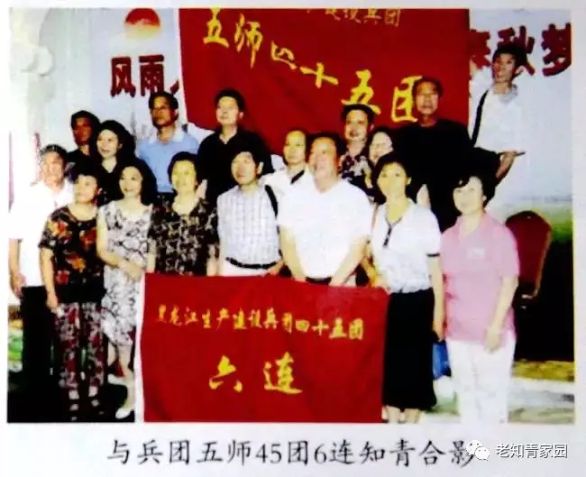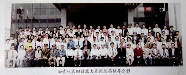 1993年6月8日,京津沪浙100多名知青应佳木斯市政府邀请,出席佳木斯市第二届经贸洽谈会,同时也受到黑龙江农垦总局的欢迎,25团服务1连张杰、74连洪波出席活动,图为总局领导刘文举等与知青合影。