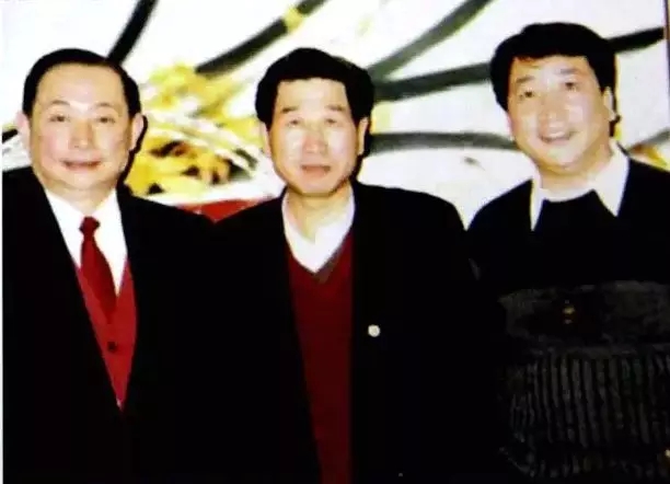 黑龙江农垦总局原局长刘文举(中)与著名戏剧家梅葆玖(左)、著名相声演员姜昆(右)
