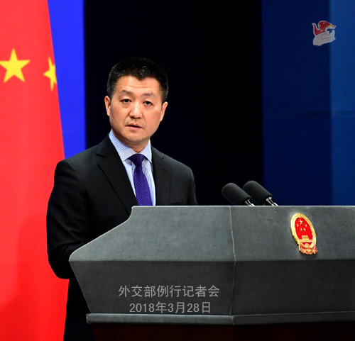 3月28日外交部发言人陆慷主持例行记者会。在记者会上,陆慷就中朝最高领导人会谈回答了多个记者提问。 问:应中共中央总书记、国家主席习近平邀请,朝鲜劳动党委员长、国务委员会委员长金正恩于3月25日至28日对中国进行非正式访问,习近平总书记同金正恩委员长举行了会谈。中方认为此访对中朝关系有何重要意义?对解决朝鲜半岛核问题和地区形势有何影响? 答:应中共中央总书记、国家主席习近平邀请,朝鲜劳动党委员长、国务委员会委员长金正恩于3月25日至28日对我国进行了非正式访问。习近平总书记同金正恩委员长就中朝关系和共同关心的问题进行了深入会谈。 金正恩委员长首次访华和中朝最高领导人此次会谈体现了中朝双方对两党两国关系的高度重视。中朝传统友谊是双方共同的宝贵财富。习近平总书记在会谈中强调,维护好、巩固好、发展好中朝关系,始终是中国党和政府坚定不移的方针。我们愿同朝鲜同志一道,继续发挥高层交往的引领作用,深化战略沟通,扩大交流合作,积极促进和平发展,夯实两国友好的民意基础,推动中朝关系长期健康稳定发展,造福两国和两国人民,为地区和平稳定发展作出新的贡献。 此访期间,双方领导人也就国际和朝鲜半岛形势深入交换意见。习近平总书记积极评价了今年以来朝方为半岛形势积极变化作出的重要努力,重申了中方有关原则立场,指出中方将继续发挥建设性作用。下一步,我们愿继续同包括朝方在内的有关各方一道努力,结合中方“双轨并进”思路及各方有益建议,共同为半岛的无核化及和平稳定、共同为本地区及世界的长治久安而努力。 问:金正恩委员长访华并同习近平总书记举行会谈,中朝关系恢复平稳,这是否意味着中方会放松执行联合国安理会决议? 答:中方一直高度重视发展中朝友好合作关系。我们也多次重申过,中方一贯坚持实现半岛无核化目标,坚持维护半岛和平稳定,坚持通过对话协商妥善解决半岛问题,我们也一直本着这一原则在半岛问题上发挥着积极的建设性作用。作为联合国安理会常任理事国,中方履行自身国际义务的意愿是毋庸置疑的。 问:朝中社对金正恩委员长访华的相关报道中提到,习近平总书记已经接受金正恩委员长邀请他访朝,表示在适当时候会访朝,但我们并未在中方发布的消息稿中看到。你能否证实?中方消息稿未提到这一消息的原因是什么? 答:中朝之间有高层互访的传统。高层交往在中朝关系发展中历来发挥着最重要的引领和推动作用。在会谈中,习近平总书记明确指出,愿在新形势下同金正恩委员长通过互访、互派特使、互致信函等多种形式保持经常联系。我们愿同朝方牢牢把握世界发展大势和中朝关系大局,加强高层交往,深化战略沟通,扩大交流合作,造福两国人民和各国人民。你说没有在中方的消息稿中看到,我只能说你没有好好看消息稿。 问:习近平总书记是什么时候邀请的金正恩委员长访华?金正恩什么时候接受的邀请?中方认为此访达成了什么目标? 答:关于此访发生的时机和原因,建议你仔细阅读中朝双方已经发布的消息稿,已经说得非常清楚了。 至于通过此访和中朝最高领导人此次会谈达成了什么目标,刚才我已经作了比较详细的阐述。关于中朝两国传统友好和两国关系方面,双方都已经确认推动中朝关系在新的历史时期迈上新的台阶。同时,我也介绍了,中朝两党两国最高领导人就当前国际和半岛形势深入交换了意见,也达成了很多共识。建议你仔细阅读消息稿。 问:关于习近平主席特别代表杨洁篪访问韩国,他是否也会向韩方通报金正恩委员长访华的相关情况? 答:杨洁篪特别代表访韩期间将会见文在寅总统,也将同韩国国家安保室长郑义溶举行会谈,会见韩国外长康京和。 此次访问主要是就推进中韩关系和妥善处理半岛问题同韩方深入交换意见。我不知道你有没有注意到,韩方也已经发布了有关消息。 问:据报道,中朝最高领导人会谈时,金正恩委员长表示希望恢复六方会谈。中方能否证实? 答:刚才我已经介绍了,在中朝最高领导人的此次会谈中,双方就半岛形势深入交换了意见,也达成了很多共识。六方会谈是推动半岛问题解决的重要平台,推动其尽早恢复是有关各方应该共同努力的方向。我们希望有关各方本着“9·19共同声明”确立的原则和精神,同步对等解决彼此合理关切,为政治解决半岛问题、实现半岛长治久安共同努力。 问:金正恩委员长访华期间,中方是否提出愿主持朝美领导人会晤?如果提出了,朝方是如何回应的? 答:自今年初以来,大家也注意到了,半岛形势朝着正确解决的方向迈出了重要步伐。我们在这里多次说过,对一切有助于促进相关各方之间对话和解、有利于进一步增进半岛缓和势头的努力,不论是什么形式和安排,中方都愿给予支持。 问:关于中方发布的金正恩委员长访华消息稿,你能否提供更多细节? 答:你觉得中方发布的消息稿还不够详细吗?电视新闻报道了约14分钟,有约3400字。 问:第一,据官方报道,金正恩委员长的非正式访问是从25日到28日,今天就是28日,访问是否已经结束了?金正恩委员长是否已经回到朝鲜?我觉得这是不太清楚的。第二,有一些报道把此访称为“秘密访问”,你是否同意这样的说法? 答:关于第一个问题,我已经说得非常清楚了,金正恩委员长对中国的非正式访问是从3月25日至28日,我相信