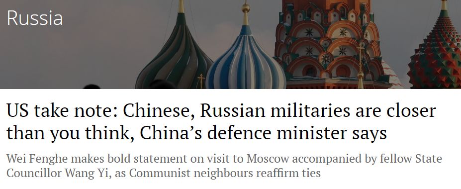 ▲香港《南华早报》文章关注魏凤和访问俄罗斯,称中俄军方关系密切。 谢尔盖·绍伊古说:“在两国领导人的努力下,俄中关系如今更上一层楼,达到史无前例的高水平,成为确保和平与国际安全的重要因素。” 俄国防部长说:“落实最高层关于发展军事合作的协议是重中之重。” 俄防长说:“您把履新后首次外访的地点放在俄罗斯令人欣慰。这再次强调了俄中全面战略协作伙伴关系的特殊性。”绍伊古相信,这次会谈将促进两国军事部门加深友谊。 魏凤和指出,中方参加莫斯科国际安全会议的目的是让美国人看到中俄军队的友谊和密切关系。中国国防部长强调:“特别是在当前形势下,我们必须来支持你们。”