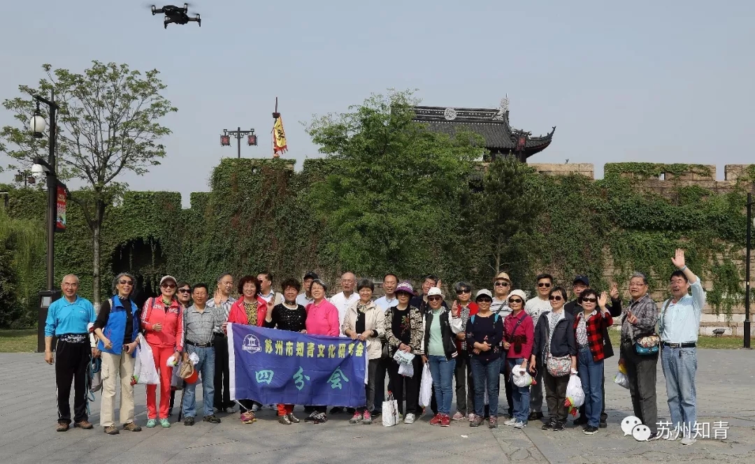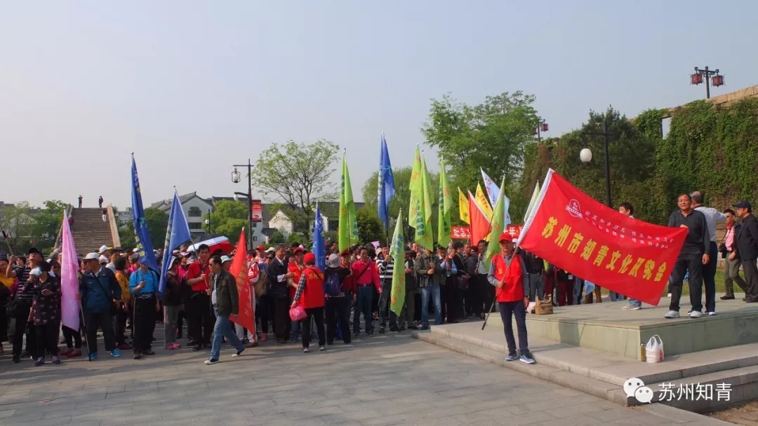 2018年4月11日,苏州环古城步道春光明媚,迎着阳光,一支500人的老年走步道队伍浩浩荡荡向前,苏州知青的旗帜鲜艳夺目。 苏州市知青文化研究会第四届环古城走步道健身活动,9点正在盘门古城墙下启动。队伍从盘门出发,终点相门,全程约4公里。 我们的老年生