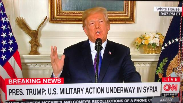 新华社记者14日凌晨在叙利亚首都大马士革听到空中传来巨大爆炸声,叙利亚国家电视台说美英法三国对叙利亚“发动了侵略”。 另据海外网援引路透社消息,当地时间14日,叙利亚首都大马士革发生多起爆炸,城市东部燃起烟雾。 据新华社快讯:美国总统特朗普13日晚宣布,美国已联合英国和法国对叙利亚军事设施实施精准打击。 特朗普在白宫外交办公室表示,“我命令美国武装部队,对与叙利亚总统巴沙尔·阿萨德(Bashar al-Assad)的化武目标进行精确打击。” 特朗普说,法国和英国也将参与袭击,他补充说,这次行动的目的是“对生产扩散和使用化学武器的行为建立强大的威慑力量”。 他说,“美国、英国和法国将整合我们所有军事、经济和外交力量,对这些暴行进行联合反应。” 再据华尔街见闻消息,据CNN,此次对叙利亚打击中已经出动了舰队和空军力量。 法国总统马克龙:下令军事加入打击叙利亚行动。 英国首相特雷莎·梅:已经授权使用武力在叙利亚实施有针对性的打击。打击是有限的,有目标的。做出这个决定是出于英国的国家利益。 而美联社报道指出,特朗普说,将持续对叙利亚进行轰炸,直到叙利亚政府停止使用化武攻击。 特朗普说:“我们准备在叙利亚政权停止使用被禁止的化学制剂之前,维持这种反应。” 另据《纽约时报》14日报道,联合国禁止化学武器组织调查团确认,叙利亚军队在进攻中投放了化学物质。对此,叙利亚坚决否认。 特朗普宣布对叙利亚实施精准打击 海外网4月14日电据今日俄罗斯报道,当地时间周五(13日)晚间,美国总统特朗普就叙利亚化学武器袭击事件发表讲话,宣布对叙利亚实施精确打击。 此前,叙利亚驻联合国大使巴沙尔·贾法里13日向西方国家撂话,称若西方发动攻击,叙利亚将别无选择对抗。贾法里告诉联合国安理会,这不是威胁,是保证。联合国秘书长古特雷斯(Antonio Guterres)则回应称,世界强权间紧张加剧,恐导致在叙利亚全面军事升温。古特雷斯还敦促安理会“在这种危险情势下,采取行动,做出反应”。 针对西方关于叙政府在东古塔地区发动化武袭击事件的猜测,贾法里当天还“申冤”称,有毒化学物质明明是在英美等国的帮助下被偷运入叙的。据海外网早前报道,贾法里当天严肃指出,在叙利亚内战中出现的有毒化学物质,都是在美国、英国、沙特、土耳其及法国的协助下,从利比亚非法运入叙利亚的。 贾法里强调,恐怖分子在很久以前就从利比亚得到了有毒化学物质,而这种行动得到了美国、沙特、土耳其及法国情报机构的帮助,他们利用民用航空公司把化学物质从利比亚转运至伊斯坦布尔。 叙利亚东古塔地区7日发生疑似化学武器袭击事件,导致70余人丧生。报道一出,叙利亚反对派、美国、英国、法国等纷纷指责叙政府军使用化学武器袭击无辜平民。但叙利亚坚决否认,并指责西方和叙反对派造谣,目的是保护被围困的恐怖分子。俄外交部则认为,该谣言旨在袒护恐怖分子,并为外部势力发动打击寻找借口。 在美国威胁要对叙利亚发动袭击,并已派遣航母战斗群前往欧洲和地中海的背景下,俄罗斯方面也没有坐以待毙。俄军事飞行监测中心监测到7架美海军侦察机日前抵近叙利亚东部海岸对俄军事基地进行侦察。 另外,根据最新的卫星图片显示,俄罗斯在叙利亚军事基地驻扎的海军舰队已离港驶向外海,这也被视为是俄罗斯海军为应对美国对叙打击而采取的措施。