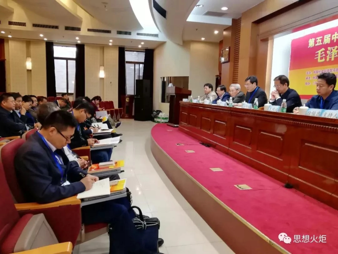 著名专家做了精彩发言。中央党校许全兴教授通过哲学思考和分析历史经验认为,实事求是思想路线是毛泽东与改革开放最直接最核心的联系,是赢得伟大胜利的法宝;中央党史和文献研究院第一编研部主任杨明伟研究员探讨了毛泽东晚年对战争与和平问题深思的出发点、主要观点,认为虽受一定的时代和环境影响,但在帝国主义依然存在、各领域的各种战争仍然存在的情况下,其精髓至今仍具有极强的现实指导作用和方法论意义;四川省社会科学院副院长胡学举研究员从党的十九大报告看毛泽东的矛盾论在新时代的成功运用,提出要敢于斗争,敢于胜利;中山大学马克思主义哲学与中国现代化研究所暨哲学系教授徐俊忠利用翔实史料论述毛泽东反对迷信苏联的“新的教条主义”、1957年提出“改革与建设”并举基本思路,指出毛泽东借此力图克服当时党内普遍存在的以经济建设压抑制度改革的单轨道思维,开启了中国社会主义改革征途的历史性探索。中央党校薛广洲教授从毛泽东改革开放思想的哲学逻辑透视中国社会主要矛盾的变迁;中国社会科学院马克思主义研究院朱继东研究员对2017年度毛泽东思想研究作了总结报告,指出成果纷呈、亮点不少,但依然有问题值得重视。河南科技大学马克思主义学院院长刘振江教授阐述了毛泽东国家治理思想研究的相关问题;江汉大学马克思主义学院特聘研究员马社香从韶山领悟讲起,强调要敬畏历史、永远敬重毛泽东;井冈山干部学院特聘研究员丁仁祥论述了毛泽东早期和苏区时期意识形态工作的实践及启迪。
