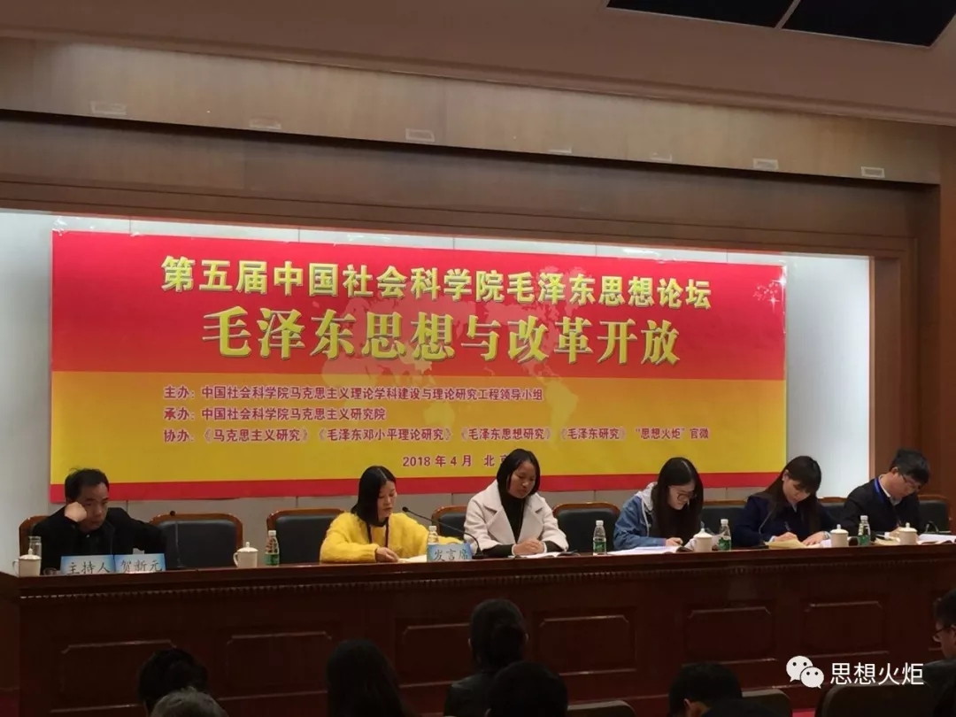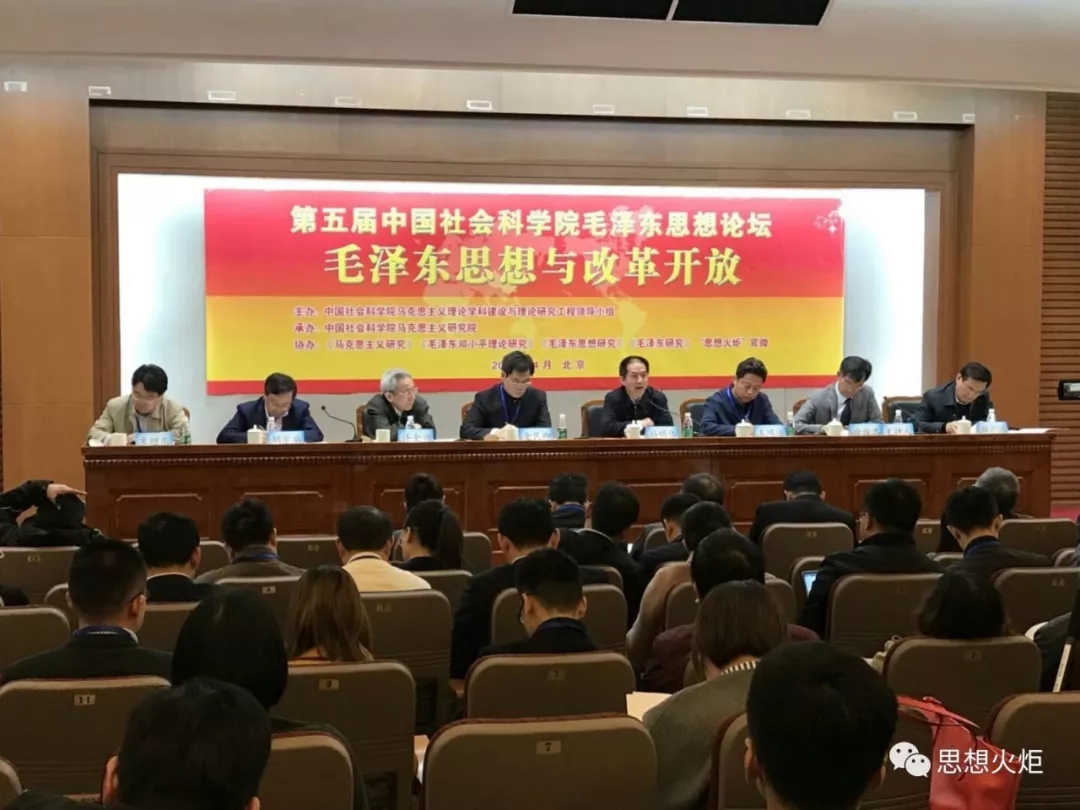 原标题:第五届“中国社会科学院毛泽东思想论坛”聚焦“毛泽东思想与改革开放” 中国社会科学院马克思主义理论学科建设和理论研究工程领导小组领导创办、马克思主义研究院承办的第五届“中国社会科学院毛泽东思想论坛”于2018年4月14日在京召开。本届论坛主题为“毛泽东思想与改革开放”,旨在深入学习、研究贯彻党的十九大精神和纪念改革开放40周年,进一步推进实践基础上的理论创新。 ![]()