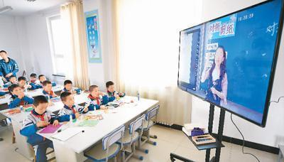 宁夏中卫市中宁县宽口井中石油希望学校的孩子通过“在线课堂”上课。(图片来源:新华社)