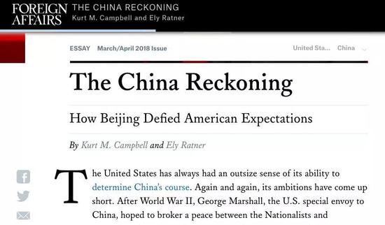 ![]() 今天下午,特朗普表示,美国财长姆努钦和贸易代表莱希泽将在数日内率代表团前往中国就贸易问题进行磋商。 不过,此行成果究竟如何,还有待观察。如此前有专家所说,美国与中国的贸易摩擦问题背后,有可能是美方全面对华策略的调整。 今年2月份,美国前国务院亚太事务助理国务卿坎贝尔与前副总统拜登的副国家安全顾问雷特纳,在美国《外交事务》发表了一篇名为《中国重估算:北京是怎样让美国期望落空的》的文章。文章虽然不似特朗普政府的《国安战略报告》般"咄咄逼人",但其行文,同样以美国视角审视中国的发展道路,并对此表达出"失望"。阅读此文,也能看出目前美国对华战略的深层逻辑。 侠客岛对此做了翻译和摘编,分享给大家。 综括 "美国一直期望能够决定中国的进程,但是总是过高估计了自己的能力。" 开篇第一句,作者就为全文定下了基调。 为此,文章从两个维度举了例子: 二战后,美国派特使乔治·马歇尔前往中国,期望两党达成和平协议;朝鲜战争期间,杜鲁门政府期待阻止中国军队跨过鸭绿江;越南战争期间,约翰逊政府相信中国会限制在越南的参与。但在这些事情上,中国都让美国很"失望"。 尼克松政府也曾对中国下过乐观的赌注。尼克松和基辛格认为,与中国友好,可以在中国和前苏联之间设置障碍,让中国更亲近美国。总之,美国人认为,凭借美国的实力和霸权,美国可以把中国塑造成为一个让美国喜欢的国家。但是历史证明,华盛顿对自己实在太过自信。 一言以蔽之,无论美国祭出"大棒"还是"胡萝卜",都没能如其所愿地改变中国。具体地,文章将之分成了三个部分来论述:经济、霸权、挑战国际规则。总的来看,可以分为政治和经济两部分。 ![]() 经济 在市场经济领域,美国对中国的"幻想"是直接而迫切的。段落第一句话即道出了真相:美国希望以加强与中国的商业合作为契机,促进中国经济的开放和自由化程度。 比如,从1990年代小布什总统的《国家安全战略》开始,美国就认为,加强与外部世界的联系,对于促进中国的经济改革至关重要。因此,美国从上世纪90年代开始帮助中国改善与外部世界的贸易状况,包括2001年支持中国加入WTO,2006年从启动与中国的高端经济对话,并且在奥巴马时代与中国建立了双边投资协定。 由此,两国的双边贸易额从1986年的80亿美元增长到2016年的5780亿美元,增长了超过30倍。 然而,这种仅有贸易额的增长,对于美国来说显然是不够的。他们还期待,中国能够进一步加强经济改革。但在作者看来,中国完全没有做到他们预想中的经济改革,比如"没有履行入世承诺",过多利用行政手段干预经济,对国企支持力度太大,没有对外企一视同仁。 不仅如此,他们还引用了去年美国商务部公布的一组数据,百分之八十的美国企业认为中国政府对他们不够友好,百分之六十的企业对中国扩大开放的举措没有信心。 ![]() 政治 政治领域的所谓"期待"自然更是落空。 文章称,过去美国一直对中国抱有一种不切实际的幻想,那就是只要中国坚持改革开放,融入世界经济,变得更加富有,那么其政治民主化就是一个必然的趋势。然而,目前的情况是,中国政府在完全保留其政治体制既有特性的同时,又充分利用了全球化带来的经济机遇,极大地增强了自己的经济实力。而这,反过来又加强了他们自身的执政合法性。 更让美国感到危险的,可能还是中国的一系列国际战略。 在文章看来,一方面中国积极参与国际事务,加入亚太经合组织,签署核不扩散条约,并参与伊朗和朝鲜问题的斡旋;另一方面,中国建立亚投行,提出"一带一路"倡议。并且,中国还明确表示,这些机构要建立自己的价值准则,区别于现有的、美国和欧洲的准则。 紧接着,文章指出,中国积极推动建造"世界级的军队",建造第三艘航空母舰、谋求在南海进行军事部署。这些无不显示中国的军事力量正在向美国靠近,而这是苏联解体以来未曾见的。 " 中国领导人已经不再坚持邓小平所说的'韬光养晦',而是强调站起来、富起来,强起来。" 于是,文章得出结论:中国谋求取代美国的地位。"2008年金融危机、伊拉克战争和阿富汗战争,让中国觉得美国必然衰落……中国领导人强调,中国的发展模式为其他国家提供了新的选择。" ![]() 应对 无疑,文章所列举的一系列事件都让作者产生了很大的不安全感。 " 华盛顿现在面临着现代史上最强大、最可怕的竞争者……华盛顿首先要放弃对中国一厢情愿的期待,接受以前对华战略失败的事实。其次,美国需要专注自己以及亚太盟友的发展。" 特朗普的《国家安全战略》的发布,于作者而言,是一丝新的曙光。在他们看来,这一报告把中国定义为"战略竞争者",是正确的一步。不过,特朗普政府的诸如缩小双边贸易赤字、放弃多边协议、质疑盟友的政策,却使得华盛顿变得越来越没有竞争力。与此同时,中国却在避免冲突中逐渐增强自己的实力。 因此,文章提出,美国必须面对现实,既不寻求孤立、削弱中国,也不再幻想让中国"变好";同时,美国应该更多地关注自己,以及盟友的权力和行为。 对于这一文章,国际社会也各有看法。比如,香港《中评社》就刊社论称美国的这一政策很吊诡。此文同样得到了新加坡《联合早报》的转载。此外,耶鲁大学法学院中国中心的一位资深研究员也认为,文章没有正确理解中美过去四十年的历史;外交关系协会的亚洲项目
