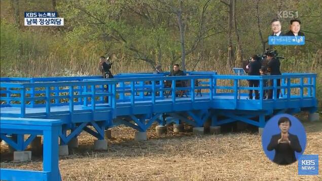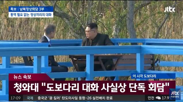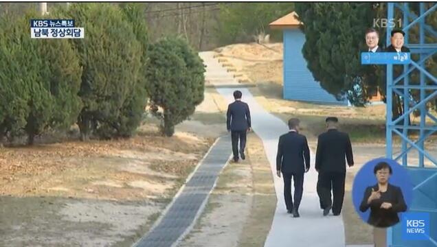 6.北京时间16时9分许,朝韩首脑在“徒步桥”上进行单独会谈。