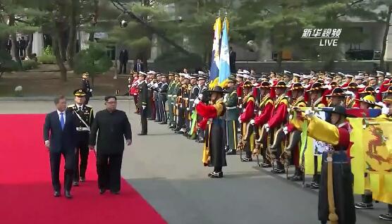 2.北京时间8时40分许,朝韩领导人在板门店韩方一侧检阅韩军仪仗队。随后双方步入“和平之家”,金正恩在留言簿上签名提字,内容为“新的历史从现在开始,在和平的时代,历史的出发点”。