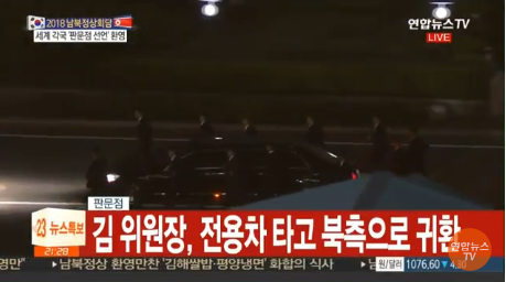 9 当地时间27日晚,朝鲜最高领导人金正恩及夫人李雪主参加韩方准备的欢迎晚宴和欢送仪式后,启程返朝,并于北京时间20时27分通过军事分界线,到达朝方一侧。