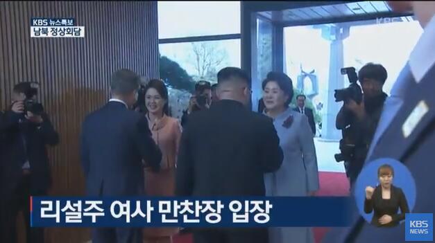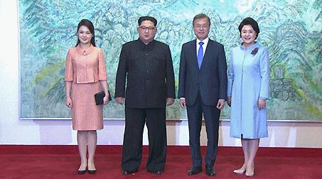 8.北京时间17时30分许,韩国总统文在寅及夫人金正淑为朝鲜最高领导人金正恩及其夫人李雪主举行欢迎晚宴,金正恩与文在寅分别致辞。晚宴结束后,韩方在板门店为朝方举行欢送仪式。