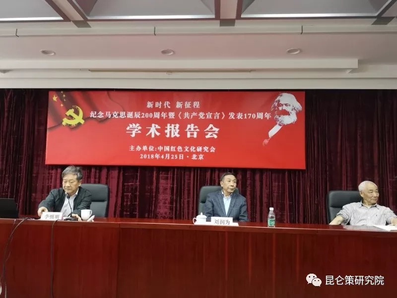 ![]() 今年是马克思诞辰200周年,《共产党宣言》发表170周年。4月25日,中国红色文化研究会、中国政治学会科学发展与政治和谐专业委员会在京举办纪念马克思诞辰200周年暨《共产党宣言》发表170周年学术报告会。 中宣部研究室原主任刘祖禹,解放军某部少将、昆仑策研究院常务副院长宋方敏,著名知情问题研究专家葛元仁,著名爱国学者司马南、郭松民,国史学会原副秘书长苏铁山等150余名专家学者、中国红色文化研究会在京理事出席会议。 会场外春光明媚、和风骀荡;会场内气氛庄严而热烈。此时此刻,每一位与会者的内心都翻腾着历史的风雨,燃烧着征服未来的火焰。 中国社会科学院原副院长、党组原副书记李慎明,中国人民大学一级教授、博士生导师周新城,中国红色文化研究会会长、求是杂志社原副总编辑刘润为作报告。 会议由中国红色文化研究会副会长、北京大学教授董学文主持。 ![]()