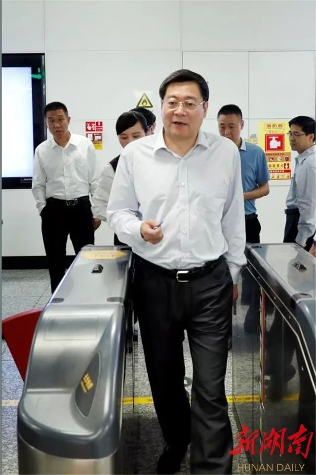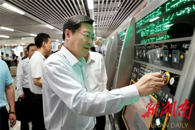 走进迎宾路口站,杜家毫来到一台自助购票机前,掏出零钱购买了一张前往五一广场站的车票;在五一广场站和开福寺站,杜家毫走进人流,实地感受地铁1、2号线换乘、地铁与长株潭城际铁路换乘体验;在人潮涌动的地铁车厢,杜家毫婉拒了市民让座的善意举动,握紧扶手,感受地铁开行的平稳性。换乘站点的引导指示牌是否清楚、车厢内地铁运行图是否明了,从购票到换乘、再到候车,每个细节,杜家毫都不放过。他说,今天就是要以一名普通旅客的身份和视角,实地感受地铁和城铁的人性化设计、便捷化程度。通过不断发现问题、解决问题,进一步提升轨道交通的管理运营水平,让广大市民出行更加安全、高效、舒适、便捷。 杜家毫:长株潭城际铁路要做到“四完善”、“两加快”