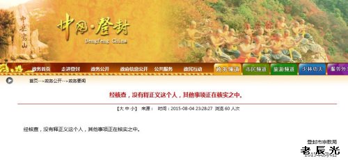 网站截图 原标题:登封市宗教局:无释正义此人其他事项正在核实 中新网8月5日电据河南省登封市人民政府网站消息,登封市宗教局4日夜间发布消息称,经核查,没有释正义这个人,其他事项正在核实之中。