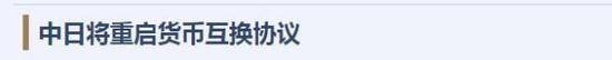 日经中文网报道称,中日两国预计将在9日就加紧开展具体磋商以缔结新协议达成共识。 文章说,此举的目的是加强中日在金融领域的合作,这将是两国关系改善的象征性举措。 ![]()