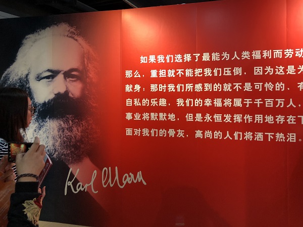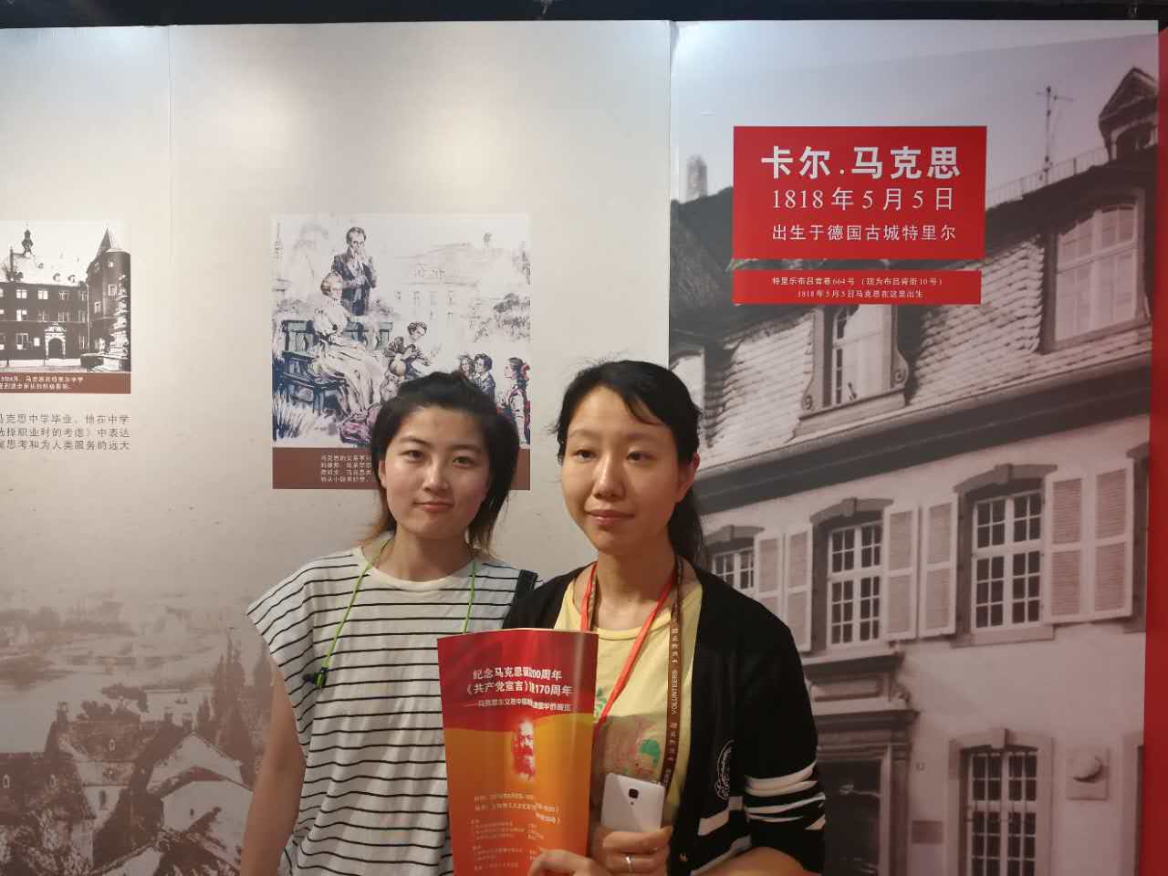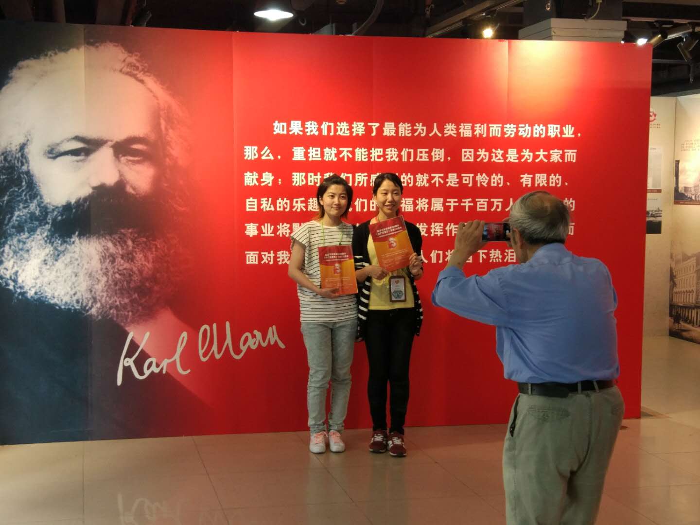 吸引我们前来参观 一一上海市工人文化宫三楼展厅参观人员川流不息 今年是无产阶级革命导师马克思诞辰200周年。上海市工人文化宫三楼举办了“纪念马克思诞辰200周年、《共产党宣言》发表170周年~马克思主义在中国的传播与旅俄华侨”展览。 这个展览自5月5日开幕以来,每天自发前来参观的人员络绎不绝,川流不息。 上海康健进出口公司党支部书记葛晓红路经市工人文化宫,看到外面的大型海报介绍,第二天就组织了党支部10名党员前来参观学习。 上海邮政储蓄营运中心党支部书记张盈和办公室主任张琳二人,自己提前先来参观,感到很有收获,当即与展览组委会商定20日下午她们要组织运营中心20多名党员集体前来参观学习,过一次党的组织生活,。她们说要从学习革命导师的理论源头做起,这才是真正的不忘初心,牢记使命。 前来参观的市民们纷纷在展厅入口处的马克思巨幅画像前摄影留念。 大家说“伟大的革命导师马克思的光辉形像永远留在我们心里,马克思的伟大思想和理论将永远鼓舞我们前进。” 许多参观人员说,他们都是路过上海市工人文化宫,看到大门口张贴的大红海报的通知,才知道三楼有这个展览,于是就进来了。没想到这个展览图文并茂、简明扼要地介绍了马克思的光辉人生,介绍了马克思主义是如何传到中国来的。特别是知道了一百多年前,中国有这么多农民工流浪到俄罗斯,流浪到欧洲。这批华工、华侨知识分子对马列主义思想来中国的传播起到了巨大的作用。 每个参观人员都留下了自己的姓名,并领取了一枚制作精美的“马列毛”纪念章。 不少还在《留言本》上写下了自己的感言。 许多观众建议:这么好的展览,但是外面许多人都不知道。建议上海市工人文化宫应该通过自己的宣传渠道、联络机制,组织附近的街道、里弄居委会、企事业单位的党员群众都来参观。 这个展览5月5日开始,将延续到5月20日结束。还有一周的时间展览,可以让更多人受教育。 (《黑土情》杂志记者佩菊5月10日上海市工人文化宫现场报道) ![]()