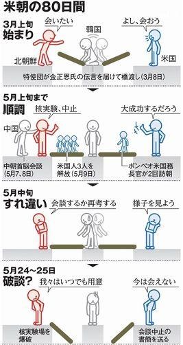 ▲日媒制作的朝美80天之内的关系图