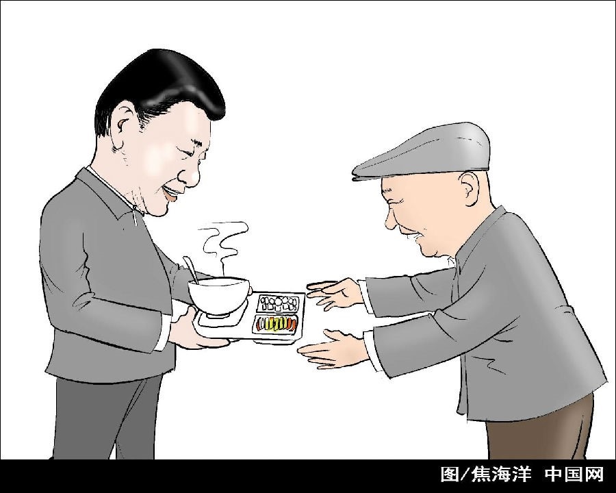 ![]() 家宴 观察者网查询到,2014年2月18日,北京市委宣传部主管主办网站千龙网发表图表新闻《习主席的时间都去哪儿了》。这是官媒首次公布习近平漫画形象。此后,关于习近平的漫画逐渐多了起来。下面是一组习大大的亲民照: ![]()