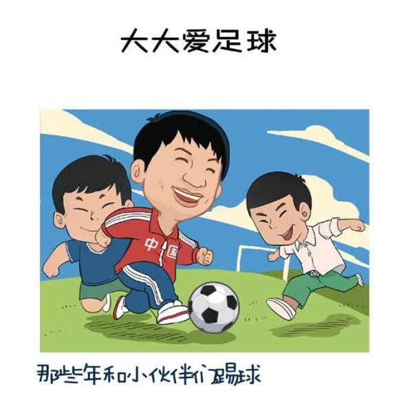 2014年7月,网友发布原创漫画,描述大大与足球之间有趣的事情。漫画从大大爱足球,治理足球乱象,足球从娃娃抓起和大大的足球梦四个方面,以其生动的萌系画风赢得网友纷纷点赞。 ![]() ![]() ![]() ![]() ![]() ![]() ![]()