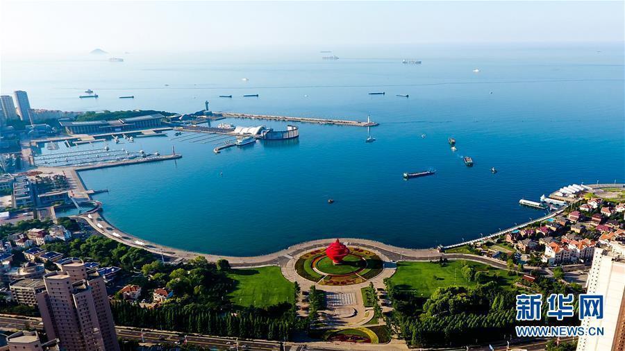 青岛五四广场及周边景色(2018年6月1日无人机拍摄)。新华社记者 郭绪雷 摄