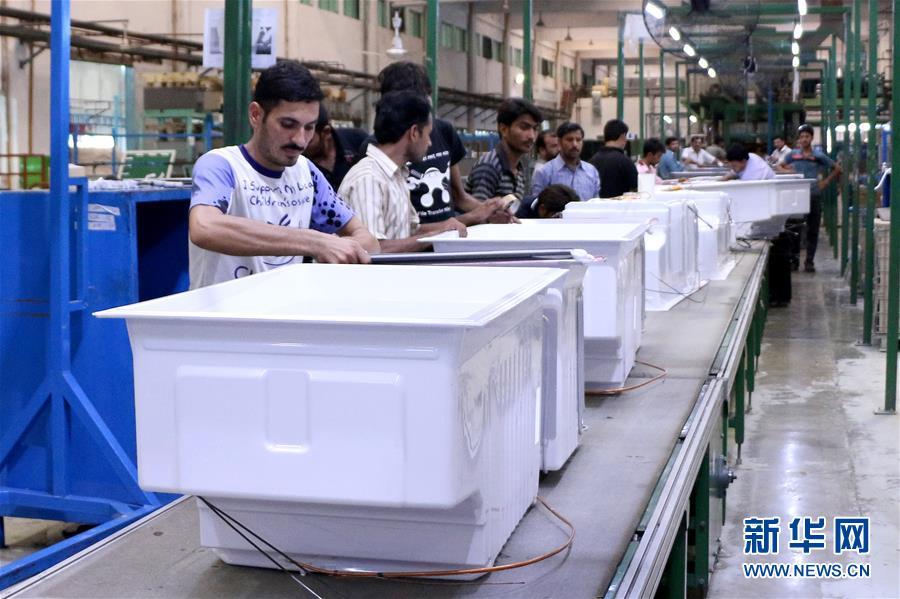 在海尔巴基斯坦鲁巴经济区冰箱车间,工人在生产线上作业(资料照片)。新华社发