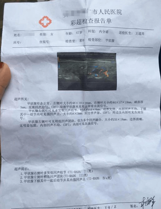潜伏十几年的甲状腺结节差点癌变,感谢这个好方法让我与死神擦肩而过! 这首歌是我演唱的《马背上的太阳》,大家听我的嗓音脆不脆,不瞒大家说,几个月前,我还是一名甲状腺病患者,因为甲状腺的问题,嗓音完全变了,还丢了工作。身体上和心理上承受了极大的痛苦。 我叫李冰竹,今年47岁,是文工团的演员,爱好唱歌、跳舞,几年前脖子不舒服,吞咽困难,声音也有些嘶哑,唱歌都跑掉,高音拉不上去,导致很多演出没法参加。以为是那段时间上火了,没有怎么在意,平时就喝点菊花茶降火。但是一段时间后还是没有任何的改善,家里人就有些担心了,非要到医院看看,结果去医院做完B超,B超显示甲状腺:左侧甲状腺左侧见边界尚清晰的结节,大小约35×18mm,无明显包膜,内部回声均匀,CDFI:内部可见血流信号。医生告诉是甲状腺结节,有恶化成恶性的可能! 咱也不懂这是什么问题,当时还没有任何的感觉的呢,只是吞咽的时候稍微有那么一点的感觉,但是听见有恶性的可能,自己首先就崩了,家人也开始担心,不让外出活动,不让动气,严格按照医生的嘱咐和方法进行调理。可是就这样调理了有半年多,各种忌口,各种调理,基本没有管过家里的事,可是脖子这块的问题还是没有明显改善,到是服用了医院的抗生素把肠胃都给刺激坏了。这期间,内心一直是十分害怕的!这还没到晚年呢怎么就摊上这事儿呢! 后来,突然一天早晨起来的时候出现吞咽困难,而且呼吸有些急促不通畅,这可把全家都吓坏了,不会是恶化了吧?直接去医院继续检查,结果显示结节出出现了钙化,医生说保守估计结节存在有十年之久!这是不好的预兆! 进一步检查结果还好,没有看到明显恶性的特征,这次病情的加重,更加让生活活在了阴霾之下,通过对这个甲状腺问题的了解,也知道恶性的80%会出现钙化,所以有加剧的现象,只是还没有到那一步!也不知道怎么哪一天会被宣判呢,这种身体和心里的压力真的有点扛不住了!不想看到老公还有孩子那种担心的眼神,也不想这么早就....唉! 这段时间,我也一直在了解这方面的知识,发现原来这么多明星都得过甲状腺疾病。 ![]() (王楠,是中国在世界乒乓球坛上的继邓亚萍之后的又一个奇迹。2006年她确诊为甲状腺癌。) (袁咏仪,现年47岁的袁咏仪年轻的时候曾是出名的大美女,2011年却患上甲状腺疾病,导致身材发福,严重走形。) (朱迅,家喻户晓的央视主持人,因为甲状腺疾病,导致无法正常工作,只能遗憾告别央视。) (1994年,汪明荃患上了甲状腺癌,影响了她的爱情。) (李连杰因为甲状腺疾病,整个人暴瘦,瞬间苍老了20岁,自言时日不多。) 接下来一年基本就是天天关注自己的病情,家里人还有朋友都给留意方法,不瞒大家说,试过的方法不下50种,有各种食疗,还有坊间谣言,针灸,汤剂,吃药等,但是奉劝大家还是不要轻易相信,当然朋友也是好! 正当身心疲惫的时候,女儿听医科大学的同学介绍了一个专门治疗甲状腺疾病的方法:膏穴散结方。还要来了大夫的微信,说实话,这近两年听了太多朋友介绍的方子,无非就是那几句,要注意饮食,不要担心受怕,按时调理,内心对这些话已经排斥了。 但是加上微信后,看到朋友圈里面有许多转发的甲状腺结节的案例,很多人转发,也产生了好奇,同时了解到膏穴散结方是一代宗师中医馆治疗甲状腺疾病的特效疗法。他们治疗这类疾病,不主张吃药,不建议手术,而是通过散结类的纯中药,配合调理患者的饮食和情绪同时治疗。通过详细的和医馆大夫的交流,我也逐渐恢复了自信心和希望!更是对医馆的水平和大夫的人品还有配方大大的信服! 通过这段时间的了解,我对甲状腺结节的病情和治疗,有了全新的认识,我发现中医治疗甲状腺疾病和在医院里西医大夫解释的真是大不一样,原来甲状腺结节、乳腺增生、淋巴结节的发病原因都是一样,和脾胃肝肾都有关系,所以治疗的时候一定要想让大夫看看具体的类型,这让我也更加认可膏穴散结方的治疗方法。膏穴散结方治疗甲状腺疾病用的是国家临床批准的药物,最关键的是外用的,避免了口服药的诸多副作用。 顺便说一下,给我主治的是医馆的张莹大夫。张莹大夫根据情况给配了一段时间的治疗方案,一段时间后张大夫老师细心的打电话咨询回访情况以及跟进调理,被张莹老师感动了(说真的,我去过这么多大医院,从没有见过一个大夫对患者这么和蔼,也许有这样的大夫,但是张大夫是我第一个遇到的),按照张老师的方法持续治疗,正如张莹老师预测的一样,开始使用一段时间,就明显感到了颈部轻松的情况,说这是软坚散结的体现,别提我有多激动了,同时吞咽问题也有好转,嗓音也逐渐恢复正常,信心倍增,继续使用一段时间后,吞咽和呼吸都顺畅了好多。唱歌的时候感觉声音也恢复正常了。 好不好就摆在了眼前,当然继续治疗,一段时间后全部用完,基本上没有什么感觉了,就像刚开始的情况,而且脖子肿大明显小的好多,不确定是不是自己的错觉,所以再去医院做了B超,结果显示甲状腺钙化现象没有了,甲状腺结节也是消下去了,检查老师说甲状腺部位未见任何异常,不禁感叹真是专业的大夫指导不一样啊,心情大好!生活也恢复了正常,重新恢复了健康的心态,姐妹们都说我皮肤也好了很多,整个人年轻了好几岁,像变了一个人,生活质量明显提高了!我还在网上开了自己的唱歌专栏,经常录制一些歌曲,这是我康复后,专门录制送