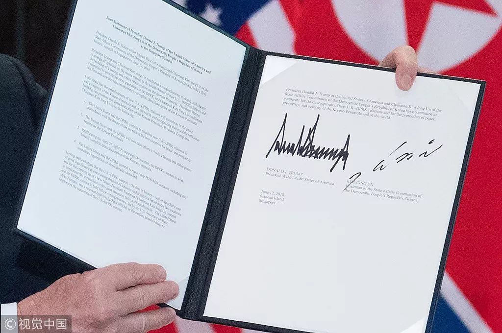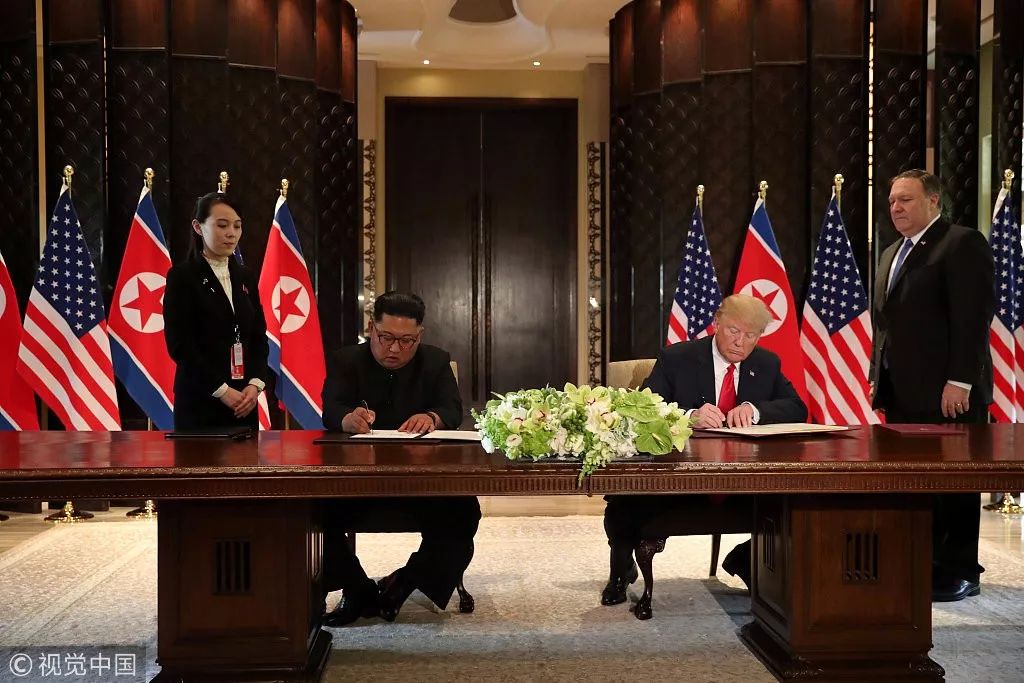 ▲当地时间6月12日,朝美首脑会晤在新加坡嘉佩乐酒店举行,金正恩和特朗普下午出席签字仪式,双方签署此次朝美峰会历史性文件。图为签署仪式现场。 报道称,在播音员解说时,纪录片播放了新加坡人挤满街头欢迎朝鲜领导人的镜头。播音员说,金正恩受到热烈欢迎。 报道称,镜头显示,在为与特朗普的峰会做准备之际,金正恩在瑞吉酒店奢华的套房内休息,随后出发游览新加坡。 报道称,这部纪录片对新加坡这个繁荣的资本主义国家的着重讲述,代表着朝鲜口吻一个引人注目的变化。朝鲜媒体通常会避免展示外国的发展进步。