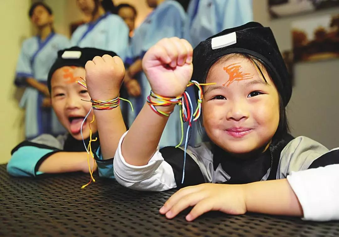 轻汗微微透碧纨,明朝端午浴芳兰。流香涨腻满晴川。 彩线轻缠红玉臂,小符斜挂绿云鬟。佳人相见一千年。 女子穿着华丽,沐芳浴兰 再将五色线轻轻缠绕臂间 在门上挂符箓以辟邪护身 宋代苏轼描绘的这幅图景 充满了浓郁的古老民俗气息