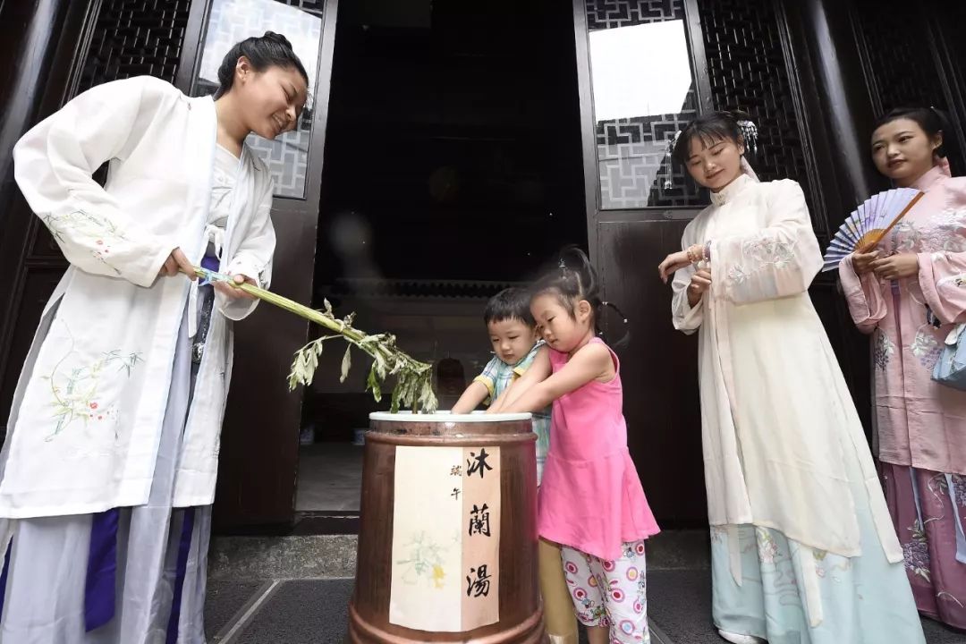 端午时节临近夏至 日暖而虫多生 古人称这天是“恶日” “浴兰汤兮沐芳,华采衣兮若英” 人们便习惯在这一天沐浴祛病