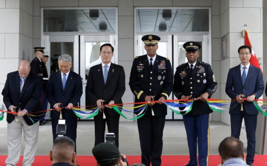 图为驻韩美军司令部新总部大楼29日举行启用仪式。(路透社)